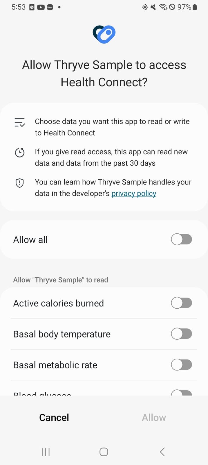 If a successful connection is established, your users’ data will start to flow to Thryves data warehouse, where you can retrieve it through our wearable API at any time.